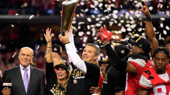 "Urban Meyer has done an excellent job strengthening our culture of commitment to academics, career development and winning championships," Ohio State athletic director Gene Smith said in a statement. "Our young men continue to thrive under his leadership, whether on the playing field where they are national champions, through life skills pursuits like Real Life Wednesdays, internships and job fairs, and academically through program-wide efforts to monitor the progress of every student-athlete which has helped the team achieve its highest graduation success rate at 78 percent.