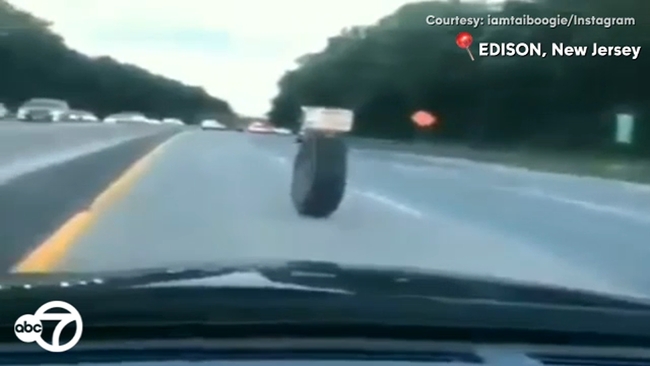EDISON, New Jersey -- It was a wild scene in New Jersey when a wayward tire rolled down the highway until it went flying into a moving vehicle.